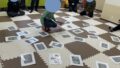 ボールをカーリングの玉に見立てて、ブラシは新聞紙で作ったお手製のブラシでカーリングの真似をしていました(*^。^*)