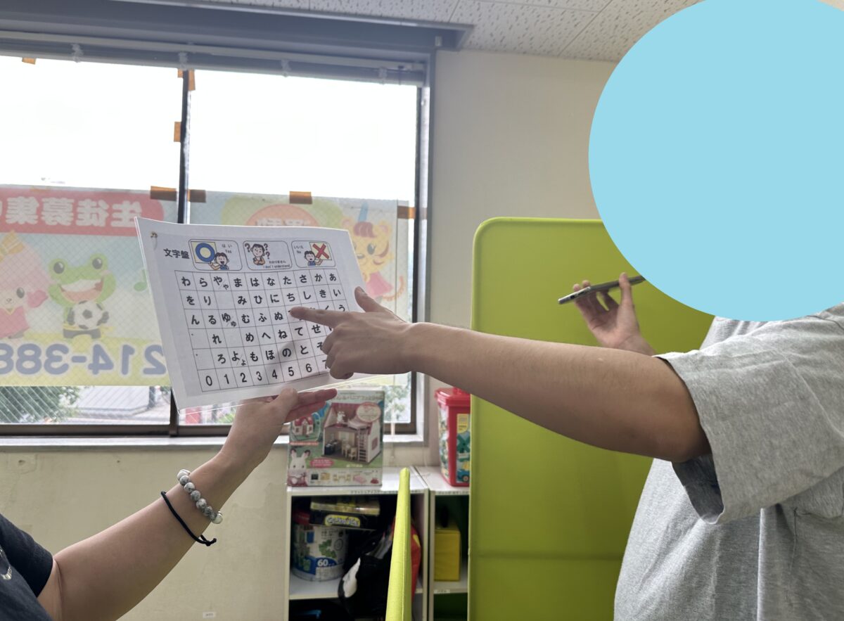 その後は、あいうえお表で自分の名前の指差し練習をしました。