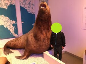昔は長野県も海の中だったんだよ~。と説明すると不思議そうに四賀で発掘された化石を眺めていました。