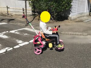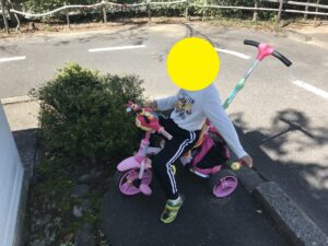 「これがいい!」と最後に選んだ自転車は可愛い三輪車( *´艸`)