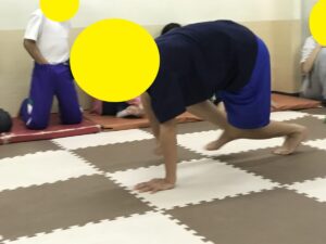 この運動遊びで身体の軸、体重移動の感覚が身に付けば、姿勢保持・改善に繋がります!