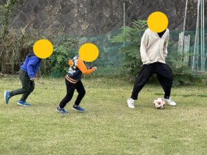 サッカーで遊んだり、外で遊べるおもちゃを持って行って大自然の中遊びました!🌳
