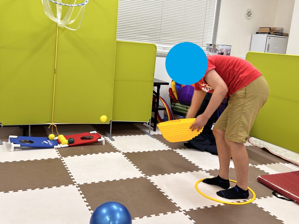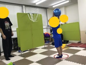 この運動は、前述のバスケシュートコース・やさしく投げて乗っけよう!コースとは違い、