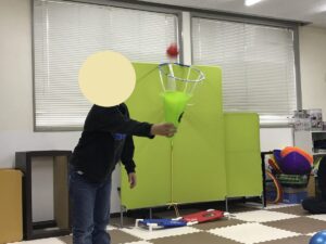 1発目は加減や調整が難しそうな様子でしたが、繰り返しやっていく中で自分なりに「これくらい」という事が分かってきて成功するお友達が増えました!!👏