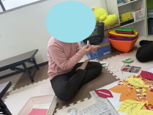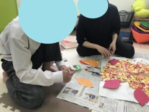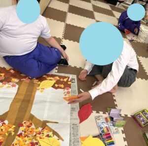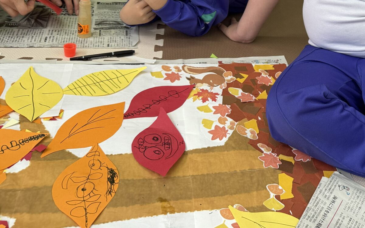 葉っぱにオリジナルの(*^^*)顔を書くお友達もいてとてもかわいい秋の落ち葉ができました😊