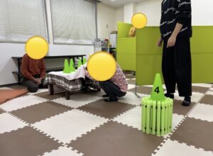 コーンの中やパーテーションの裏、机の下などを見て探していますね!😁