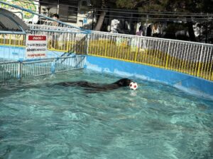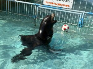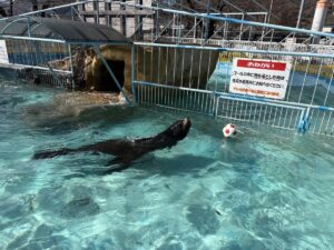 アシカのシュンくんを眺めていると・・・。ちょうどアシカのお食事タイムになりました。