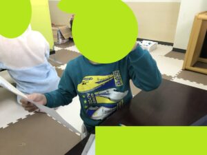 新聞紙レースは最後に質問が書いてありお友達への質問が