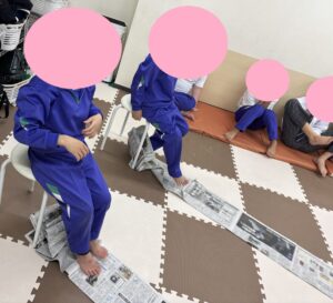 新聞紙レースは最後に質問が書いてあり、それを呼んでお友達が答えます。