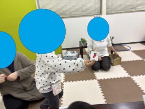今日は運動遊びの時間を使って制作活動とビンゴ大会を行いました。