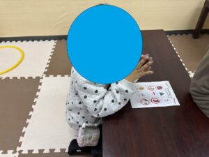 「なかなかシールがはがれない…」と苦戦するお友達は、スタッフさんやお友達に手伝ってもらって自分だけのビンゴカードを作っていきました。
