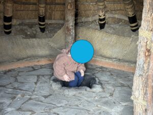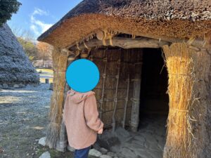 次は外を探検!ここには竪穴式住居や高床式倉庫など、縄文時代の建物が多く設置されています。