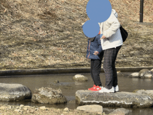 他にも石の渡橋を渡るお友達の姿が(^^♪