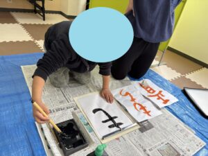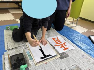 学校の書初めの宿題をもってきたお友達もいて、心を落ち着かせながら一生懸命に書くことができました。