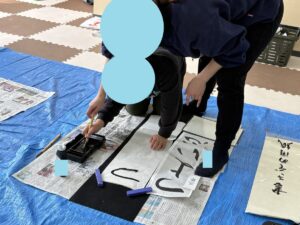 教室のお友達は「書初め」に取組みました。
