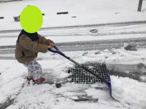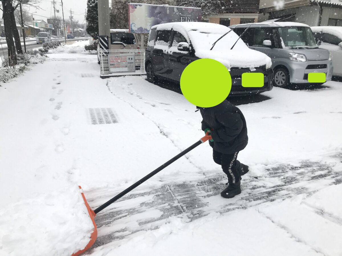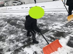 駐車場に雪が積もったのでスタッフが『雪かきしよう』と提案すると