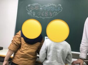 歴史館の方からの提案で、全面に色を濃く塗り、乾かした後その上からまた別の色を重ねて塗って乾かないうちにペーパーでふき取ると、色が混ざらずに単体の2色がきれいにデザインすることが出来ると教えていただきました!!😯