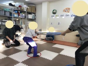 まずは前回同様フープの中から出ないように、