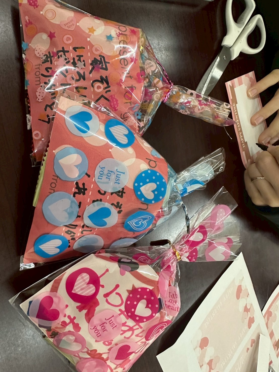 「バレンタインだからチョコかな?」「クッキーもいいかも!」などと話し合いながら