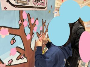願いごとを書いて桜の木に見立てたボードに貼りつけ、季節を感じながら楽しみました。