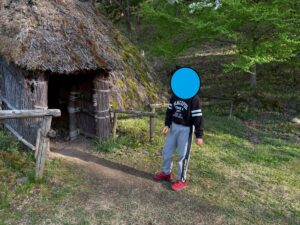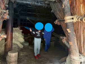 お散歩組は竪穴式住居に入って記念撮影をしたり…