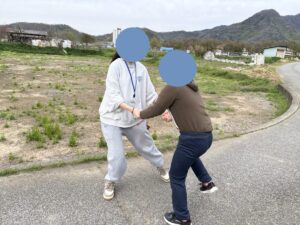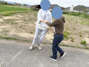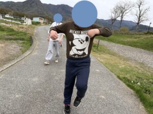 散策の途中にスタッフが「スキップしようよ」と提案してみると