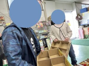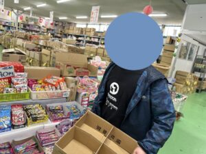 お店に入るとお友達も慣れてきているせいか自ら箱を持ち、お買い物スタート😂