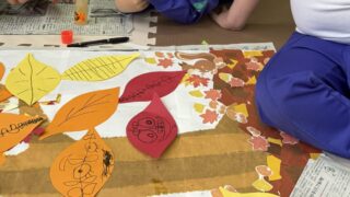 今日の自由時間は桜堂に可愛い秋がきました🍂シーズンごとに変わる壁絵を今日はスタッフとお友達で作りました。 みんなで葉っぱをペタペタ貼り付けて。葉っぱにオリジナルの(*^^*)顔を書くお友達もいてとてもかわいい秋の落ち葉ができました😊今日は...