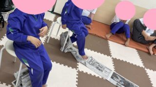今日の運動遊びも新聞レースをしました📰新聞紙レースは最後に質問が書いてあり、それを呼んでお友達が答えます。1人1人の顔をみて、スタッフが質問を考えました!今日は、『(となりで一緒に運動遊びをしている)○○ちゃんのいいところは?』とお友達の事...