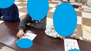 今日は運動遊びの時間を使って制作活動とビンゴ大会を行いました。まず、子どもたちは白いマスが九つ並んだカードを受け取ります。そこに帽子や手袋、トナカイなど…クリスマスにまつわるイラストのついたシールを好きな並べ方で貼っていきます。「なかなかシ...